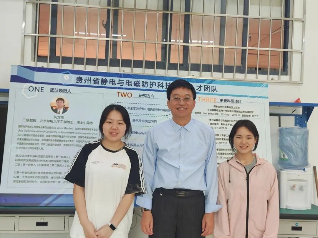 两位员工记者与阮方鸣教授进行合照