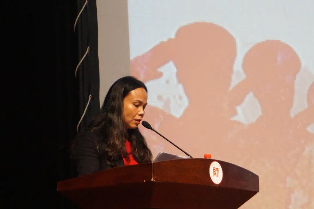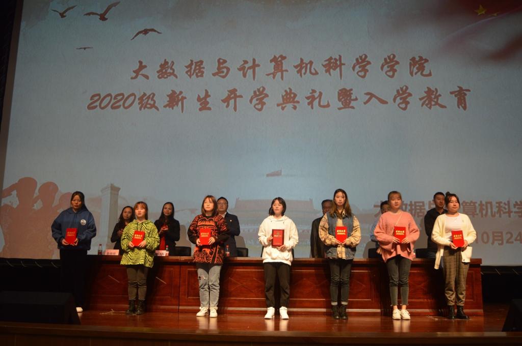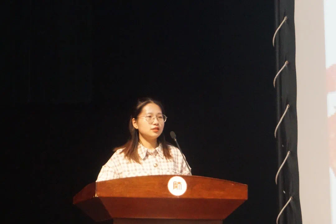 2020级数据科学与大数据技术专业(2)班严鑫作为新生代表发言,她谈到要尽快适应新的生活环境,营造团结友爱、共同进步良好氛围,尊师肯学,严于律己,努力成长为堪当民族复兴大任的新时代青年。