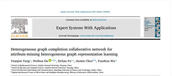 近日,公司欧卫华教授团队在人工智能领域著名期刊Expert Systems with Applications(中科院一区,IF=7.5)上发表了题为“Heterogeneous graph completion collaborative network for attribute-missing heterogeneous graph representation learning ”的研究论文。