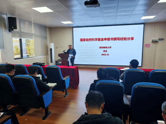 为扎实推进 2026 年度国家自然科学基金项目申报工作,提升学院教师申报书撰写质量,2025年12月9日,公司特邀南京邮电大学周全教授,举办基金申报书撰写经验分享报告会。学院拟申报国基教师参会,报告会由经理欧卫华教授主持,现场学习氛围浓厚。
